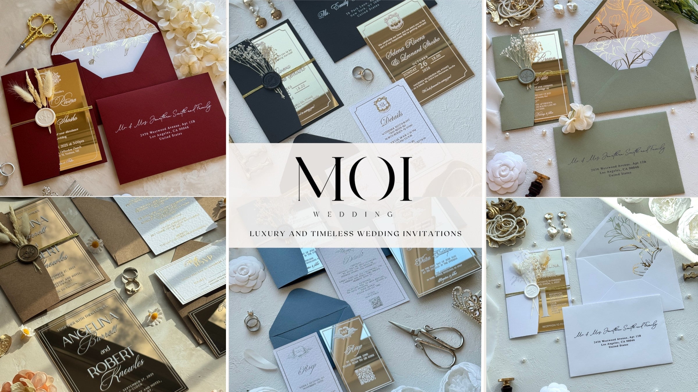 GOLD ACRYLIC WEDDING INVITATIONS WITH IVORY ENVELOPE